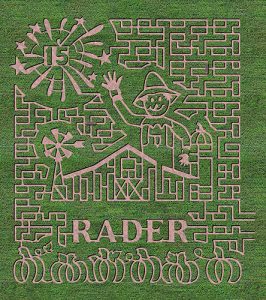 Come check out our A-MAZING corn maze! Rader Family Farms is proud to partner with Beck’s Hybrids and Precision Planting in 2025 to design and grow another challenging, interactive and fun corn maze.